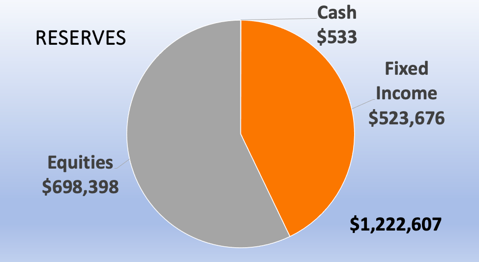 Excess operating funds are deposited into our Replacement Reserves. While these funds are reflected as an expense in the budget, the funds are actually going into our Reserves account (savings account). At the end of this year we expect to exceed and deposit $120,000 in the Reserves account.